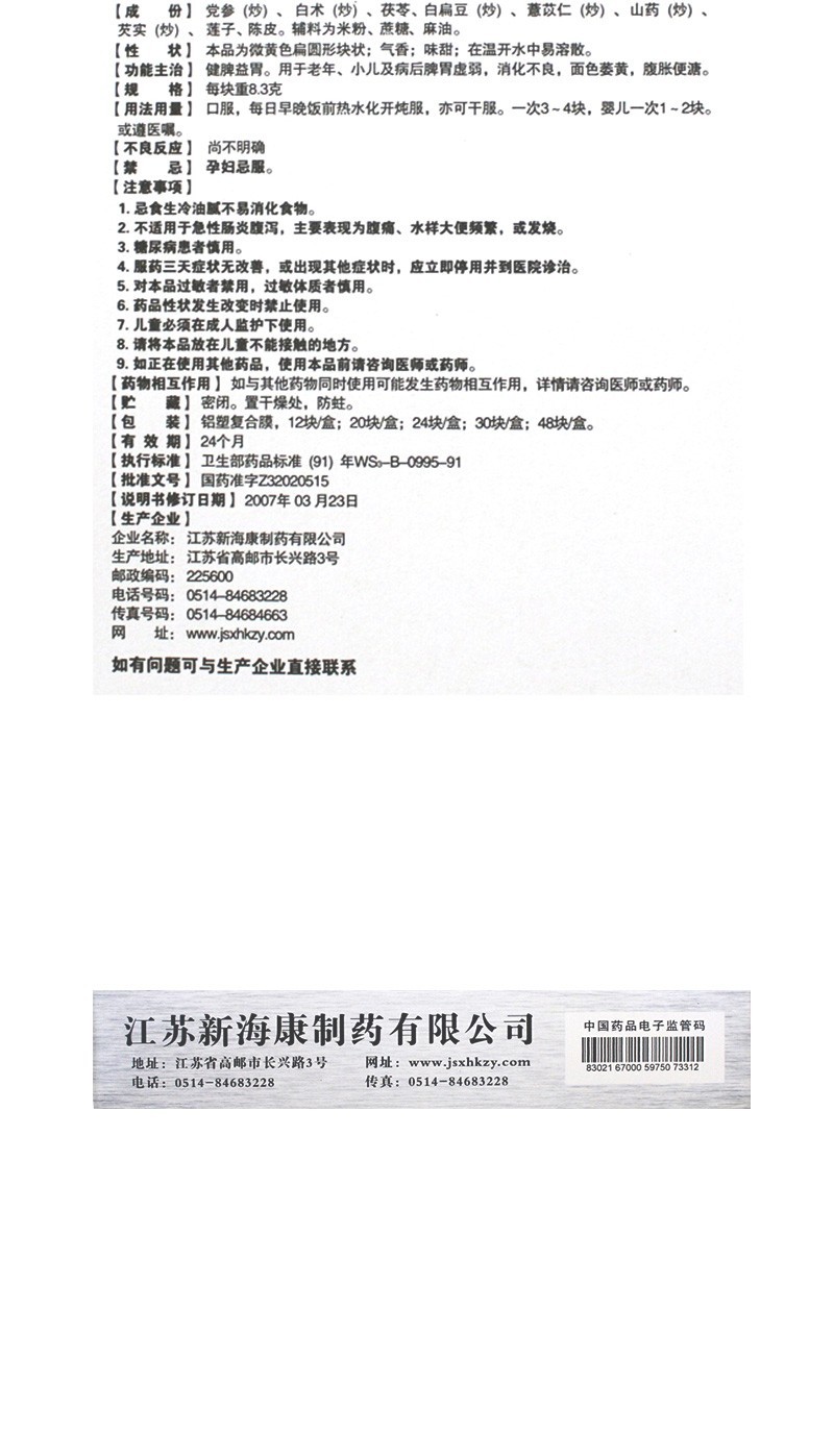 - 【主要成份】党参(炒)、白术(炒)、茯苓、山药(炒)、薏苡仁(炒)、莲子、芡实(炒)、白扁豆(炒)、陈皮。